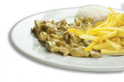 Körili Tavuk ( Adam's Pizza ) Sote edilmiş tavuk bonfile parçaları,mantar yanında patates ve pilav ile |
